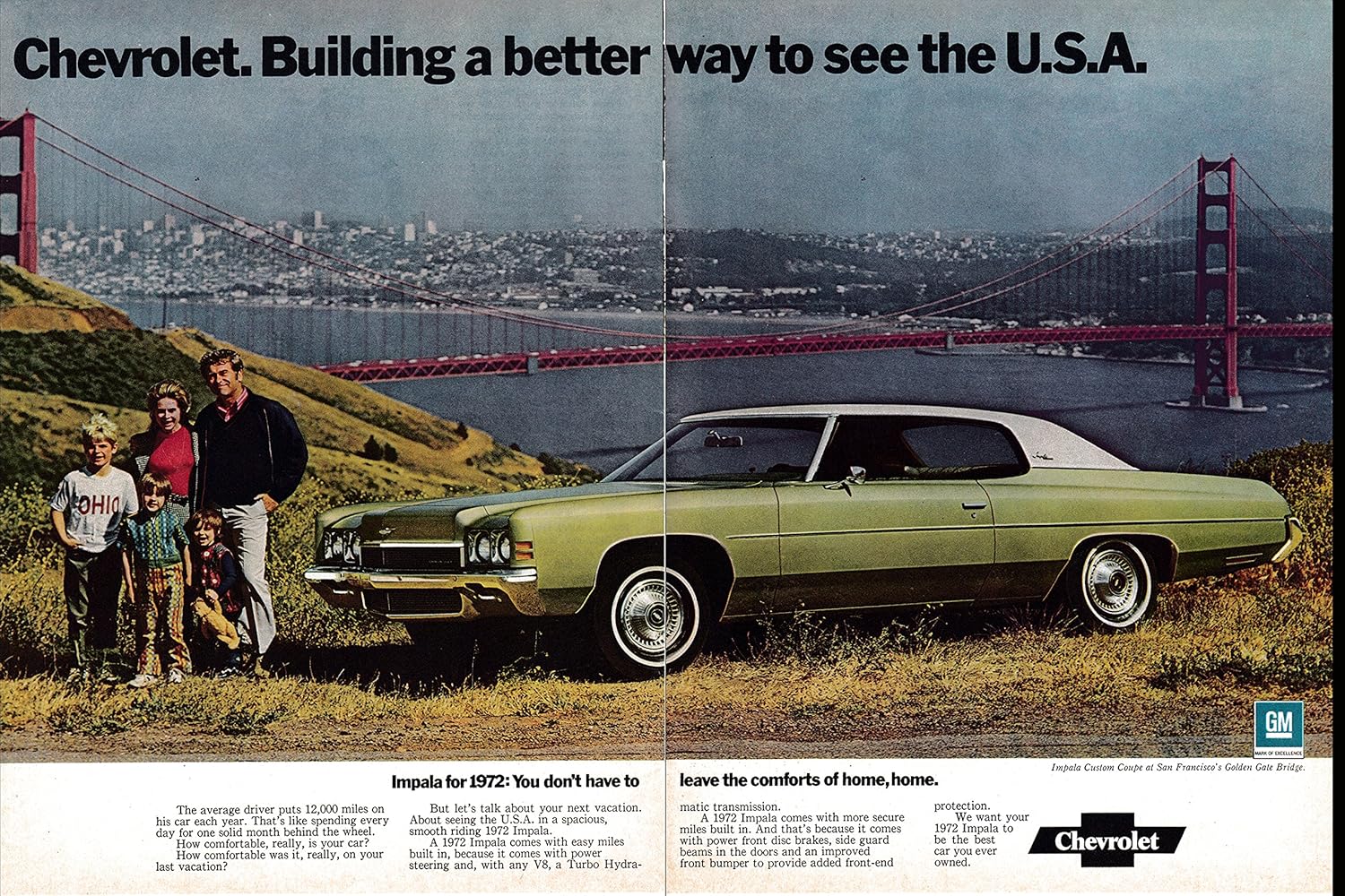 Amazon Com 1972 Chevrolet Impala Coupe San Francisco Golden Gate Bridge Original 2 Page Magazine Ad Everything Else