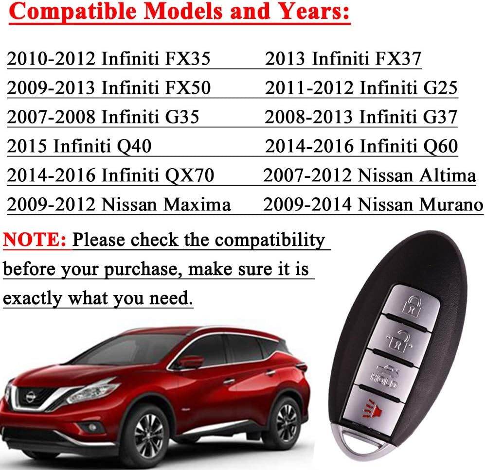 New 4 Buttons Uncut Insert Key Fob Remote Control Case Shell Replacement For Kr55wk48903 2007 2012 Nissan Altima 2009 2014 Nissan Maxima Wish