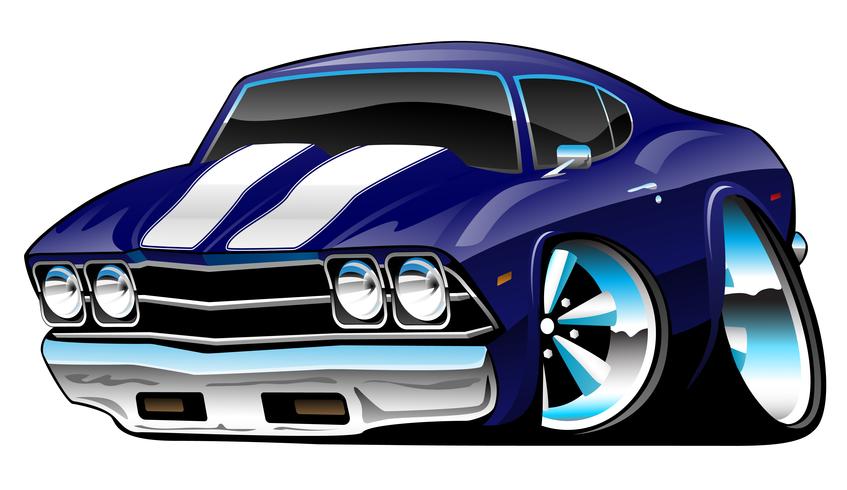 Classic American Muscle Car Cartoon Deep Blue Vector