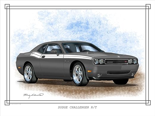 Dodge Challenger Rt Orange Muscle Car Art Drawing By Rudy Edwards