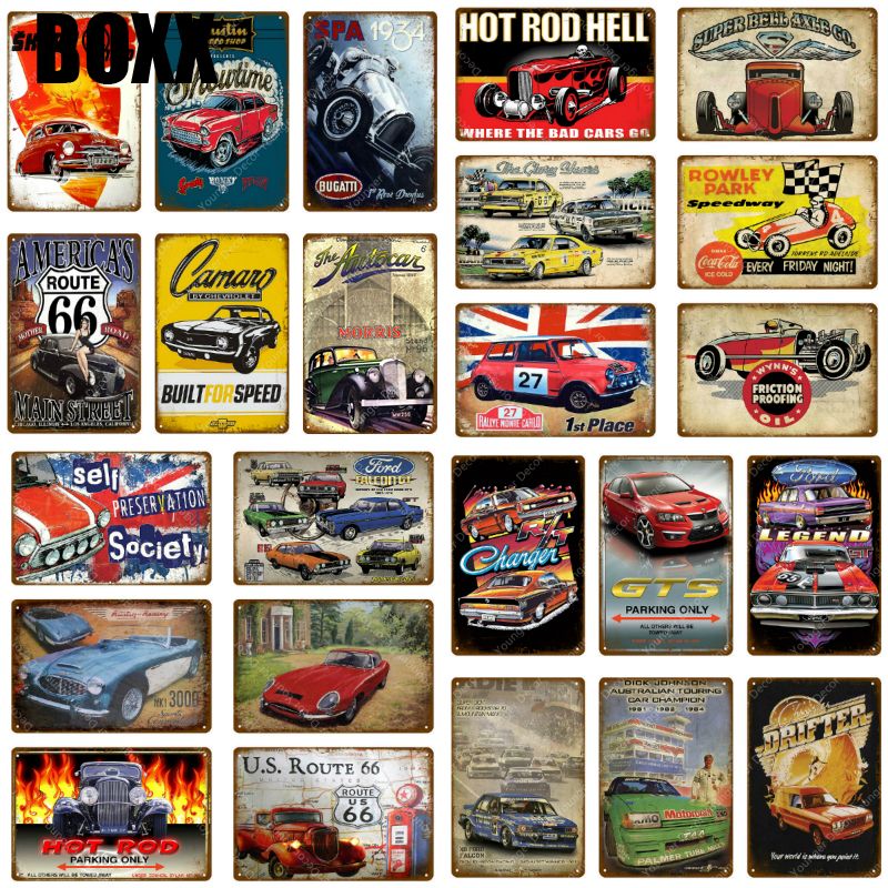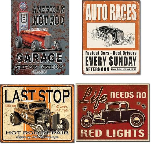 4 Muscle Car Route 66 Metal Signs My Garage My Rules Charger