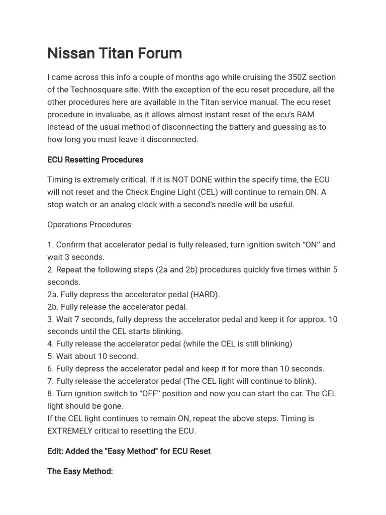 I Need The Idle Reset Procedure For A 2007 Nissan Versa Sl 1 81