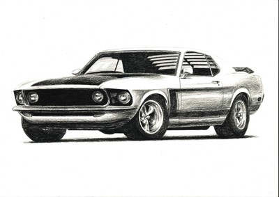 Ford Mustang Boss 302 1969 Pencil Car Drawing Size A3 11 7 X 16 5